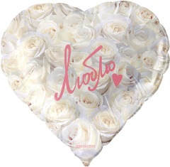 Шар (18''/46 см) Сердце, Люблю (симфония роз), Белый, 1 шт. в уп.