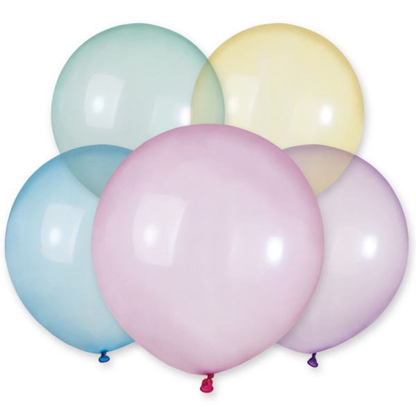 Набор высококачественных воздушных шариков большого размера типа кристалл состоит из 5 нежных оттенков: желттого, голубого, розового, лилового, зеленого цветов и полностью прозрачного шара. Все вместе они похожи на воздушную радугу. Выбирайте шарики RAINBOW (Радуга) для элегантных и изысканных вечеринок! Размер шариков в надуве ок. 55 см, подходят как для надува воздухом при помощи ручного насоса так и заполнения гелием. Для длительного полета шаров с гелием используйте для обработки средства Hi-Float, KODA или FlyLuxe.
