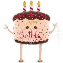 Сложная, объемная фигура в форме праздничного торта со свечками. При надувании рекомендуется использовать гелий. Имеет встроенный клапан - что упрощает надувание. Тонкая миларовая (фольга на полиэтиленовой основе) пленка позволяет шарам не сдуваться от недели до одного месяца.
