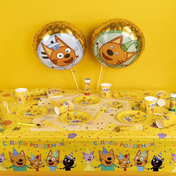 Стаканы (250 мл) Три Кота, С Днем Рождения! Желтый, 6 шт.